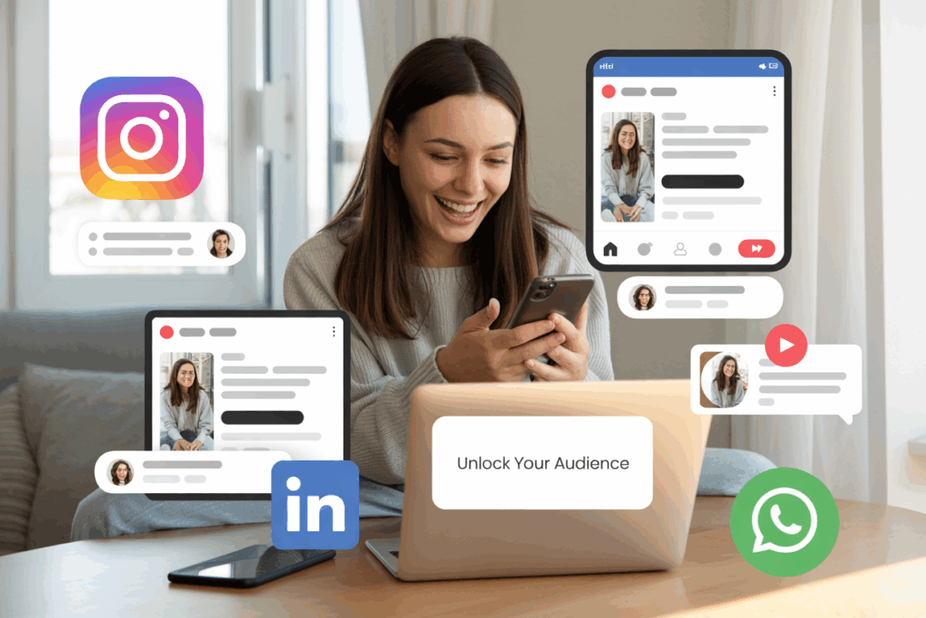 - Poste no Instagram, Facebook e LinkedIn.
